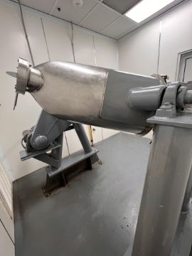 PATTERSON KELLEY TWIN SHELL V-BLENDER, S/N 245248, 5-CUBIC FEET, 95 LB/CU FT