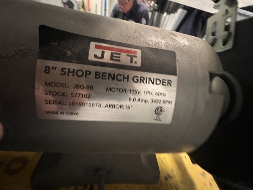 JET 8 IN. DOUBLE END GRINDER, MODEL JBG-8B, S/N 20190100078, 3450 RPM, 115 V, 1 PHASE, 60 HZ