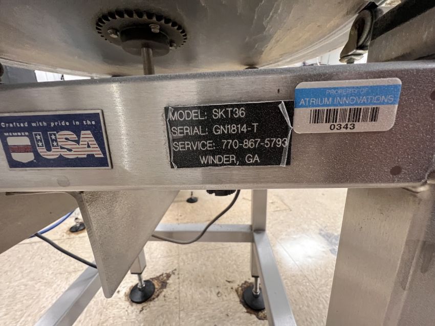 SUREKAP ROTARY ACCUMULATION TABLE, MODEL SKT36, S/N GN1814-T, APPROX36 IN. DIAMETER (112 Technology Dr., Coraopolis, PA 15108) (RIGGING AND LOADING FEE: $200)