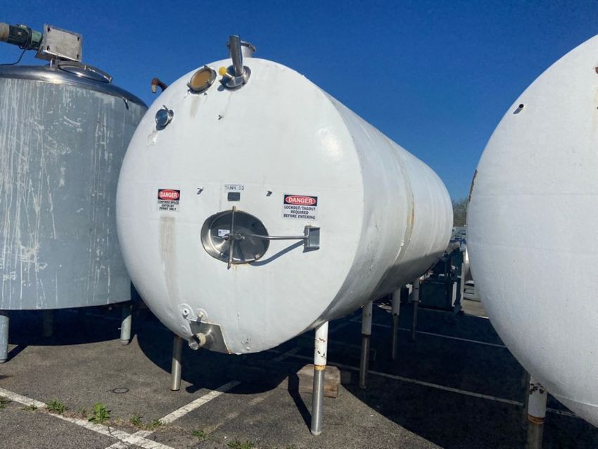 Sprinkman Corp. Aprox. 7,100 Gal. Horizontal Jacketed Tank, S/N 80-8336, Overall Length: Aprox. 14 ft. L, Set-Up for Vertical Agitation (Does Not Include Vertical Agitation), with Dual CIP Spray Ball, Mounted on S/S Legs (Tank 53) (INV#93105)(Located @ the MDG Showroom 2.0 in Monroeville, PA)(Handling, Loading & Site Management Fee: $850.00 USD)