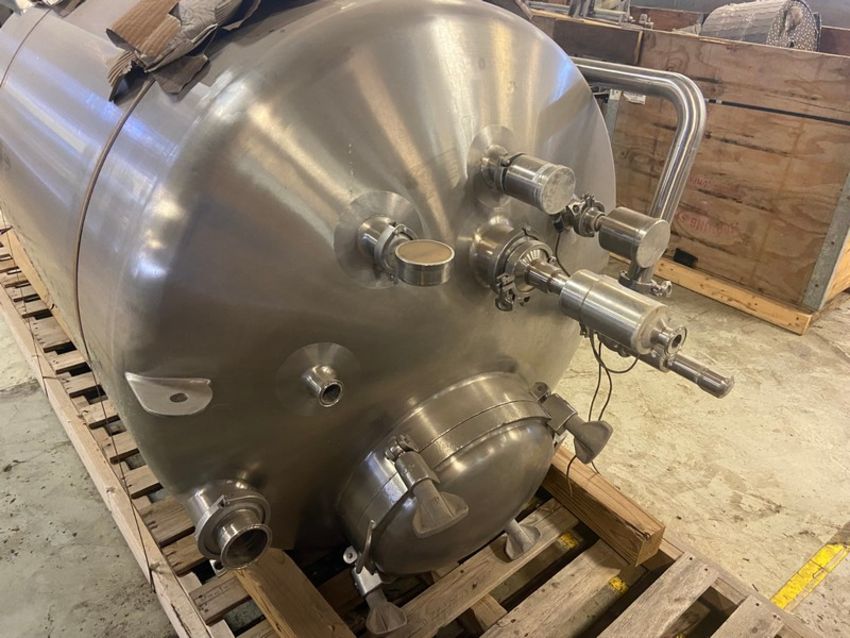 Aprox. 500 Gal. S/S Single Wall Tank, Internal Dims. of Vessel: Aprox. 64" L x 48" Dia., with Related S/S Air Valves, Mounted on S/S Legs (LOCATED IN CRYSTAL CITY, TX)(LOCATED IN CRYSTAL CITY, TX)(RIGGING, LOADING, & SITE MANAGEMENT FEE: $250.00 USD)