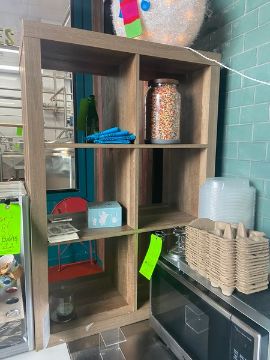 6-Section Cubby Hole Display Case, Overall Dims.: Aprox. 31" L x 15" W x 44" H (LOCATED IN RED HOOK BROOKLYN, N.Y.)(RIGGING, LOADING, & SITE MANAGEMENT FEE: $25.00 USD)