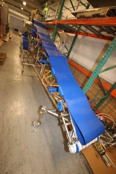 2019 Alimec Aprox. 140" L x 15.5" W x 23" to 67" H S/S Inclined Belt Conveyor, SN 813-54, with Bauer S/S Drive Motor on Casters (INV#99542) (Located @ the MDG Palmer Auction Showroom in Pgh., PA) (Loading, Handling and Site Management Fee $100)