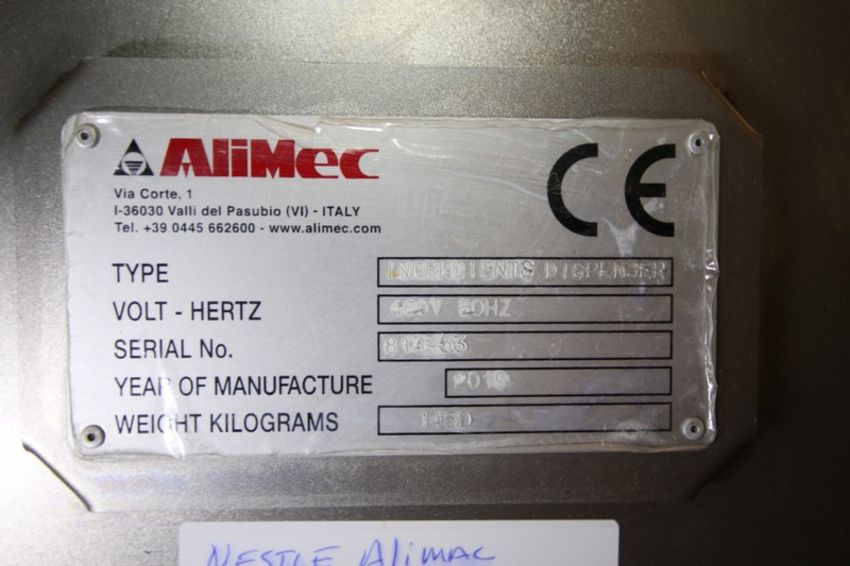 2019 Alimec S/S Topping Waterfall Applicator, Type INGREDIENT DISPENSER, SN 813-53, with 11" W Conveyor, Allen Bradley Controls, 480V(INV#99534) (Located @ the MDG Palmer Auction Showroom in Pgh., PA) (Skidding, Loading, Handling and Site Management Fee $1,200)