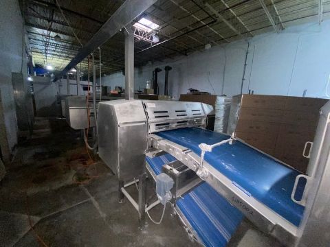 Tromp Bakery Equipment Pre-Roll & Pre-Duster Line, Includes S/S Chunker, with S/S Infeed Funnel, Rollers with S/S Rolls, (4) Pre-Dusters, Allen-Bradley PanelView Plus 1000 Touchpad Display, Line Has Aprox. 32" W Belt, Includes 3-Door S/S Control Panel (LOCATED IN HILLSIDE, N.J.)(RIGGING, LOADING, & SITE MANAGEMENT FEE: $4,000.00 USD)