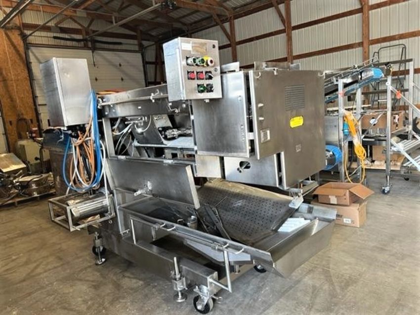 Grote S/S Sanitary Slicer/Applicator, Model S/A, We have Many Different Sizes of Tooling for this Slicer; Product Size up to 6" (152.4 mm) Dia., Slicing Zone - 22", 30" or 48" Wide; Slice Thickness up to .5" (12.7 mm) standard, up to 1.5" (38.1 mm) Optional; Slicing Zone Widths 22" (558.8 mm), 30" (762 mm), or 40" (1016 mm); Electrical 200 - 575 VAC, 50/60 Hz, 3 Phase; Water 40-100 PSI (required with some products) -- The Slicer/Applicator slices and applies a wide range of products directly onto your processing lines in multiple lanes with rpecise targeting; customize to your operation with head and lane configuration, slicing zone size, left or right hand orientation and cantilevered design. Continuous product loading with gravity feed and optional low-level sensor reduces downtime and maintaines slice quality. Its new sanitary design features an open channel frame and easy access for fast and thorough cleaning. Slice and apply or bulk slice up to 150 strokes per minute, per lane; stack and shingle up to 120 strokes per minute, per lane; Custom Height, Frame Orientation, Head and Lane Configurations; Continuous Product Loading Reduces Downtime; Sanitary Design with New Open Channel Frame, Watershed Enclosure and Easily Removable Parts; Last Used in the food industry slicing cheese, Used in excellent condition. (Loading and Crating Fee $700) (Located Hortonville, WI)