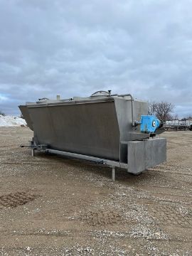 Aprox. 2,500 Gal. S/S Mixing Tank, (2) S/S Augers, Stainless Mixer, (4) Covers with Locks, (1) Complete Sprayball, (1) Missing, Control Box, Removal Door with Handles, On Legs, Baldor 15 hp Motor #1, 230/460 V, 1760 RPM; Baldor 10 hp Motor #2, 230/460 V, 350 RPM, (1) 4", (1) 2" and (3) 1-1/2" Inlets, (1) 3" and (2) 1-1/2" Outlets, Overall Dimensions Aprox. 200-1/2" L x 73" W x 90" H (Unit #3522) (Prep Fee $400) (Located Pulaski, WI)