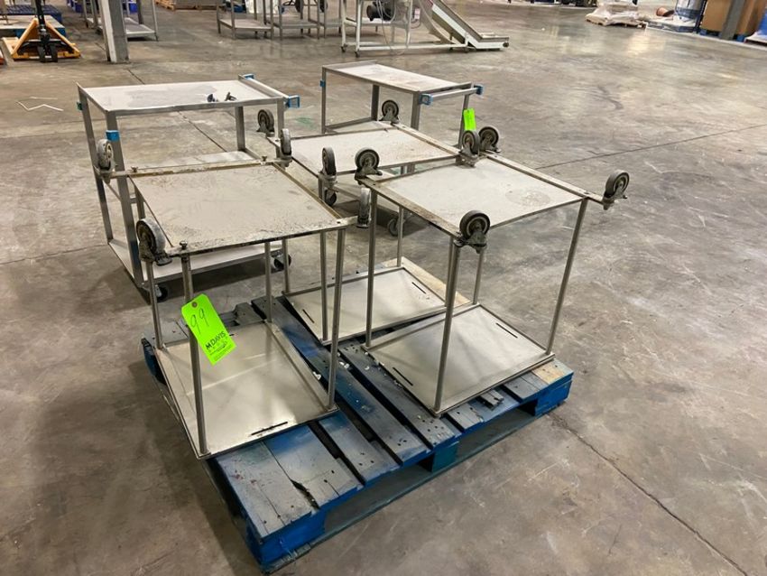 (5) S/S Carts, with Bottom Shelves, Mountd on Casters (RIGGING, LOADING, SITE MANAGEMENT FEE: $50.00 USD)(LOCATED IN ATLANTA, GA)