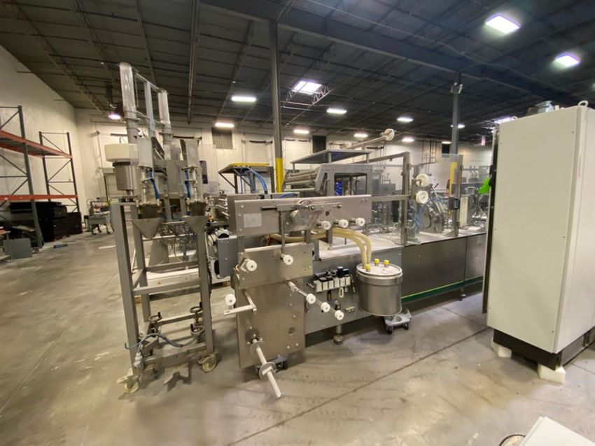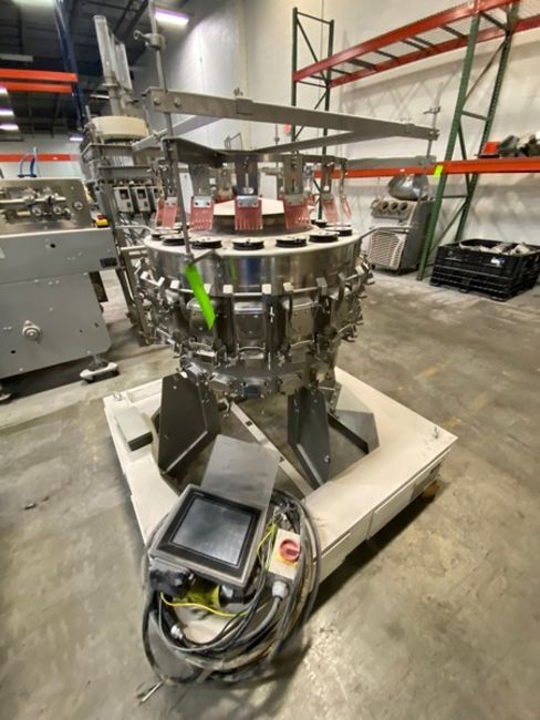 2017 SN Maschinenbau GmbH Pouch Filler, Type FBM22, S/N 1454, 480 Volts, 3 Phase, with Large Assortment of Spare Parts Change Parts, with (2) 2-Door Steel Cabinets II. 2017 Ishida 16-Station Filler Scale, Project Number: 205333701, S/N 100305005, with Controller Associated Buckets Pans, Includes S/S Platform III. 2017 S/S Z-Conveyor, with Motor Tote of Plastic Buckets IV. 2017 Bizerba Dual Lane S/S Automatic Check Weigher