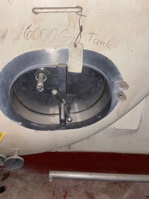 6,000 Gal. Horizontal Blend Tank, with Man Door & Ladder (LOCATED IN MANTECA, CA)(RIGGING, LOADING, & SITE MANAGEMENT FEE: $2,000.00 USD)