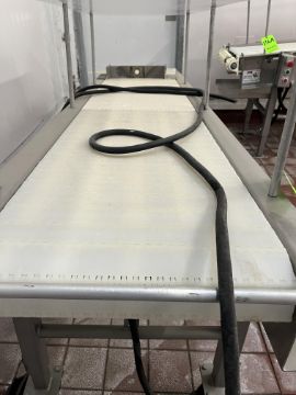 Marchant Schmidt Inc. Straight Section of S/S Conveyor, S/N 6886-001, with Plex-Glass Ceiling, with Motor, Mounted on Caster (LOCATED IN MANTECA, CA) (RIGGING, LOADING, & SITE MANAGEMENT FEE: $350.00 USD)