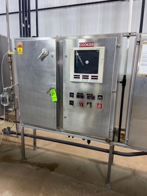 S/S Dual Auger Feeder, with S/S Funnel, with 2 hp Motor, Panel Mounted on Portable Frame (LOCATED IN MANTECA, CA)(RIGGING, LOADING, & SITE MANAGEMENT FEE: $450.00 USD)