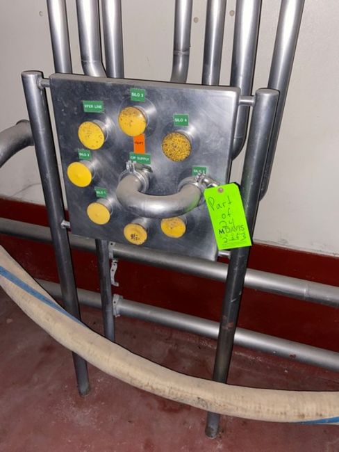 (4) S/S Flow Diversion Clamp Type Panels, 1-(6) Port; 1-(9) Port; 1- (5) Port; 1- (6) Port; Mounted on S/S Legs (LOCATED IN MANTECA, CA)(RIGGING, LOADING, & SITE MANAGEMENT FEE: $50.00 USD)