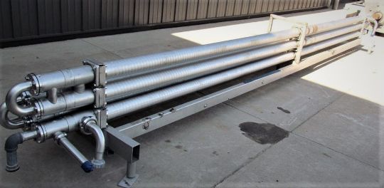 Tetra Spiraflo Tubular S/S Sanitary Heat Exchanger, Model MTC-108/W-6-2, Mfg. #123096-04, All S/S Unit with 7-Tubes, 4" Opening, Overall Dimensions Aprox. 256" L x 38" W x 39" Height.  Unit was last used in the food industry.  System is in excellent condition.  This was very expensive new, Unit will need to ship via flatbed (Loading Fee $250) (Located Hortonville, WI)