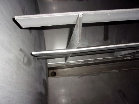 200 CU FT Stainless Steel Liquids/Powder Paddle/Ribbon Blender, (111 cu ft capacity to top of agitator arm, Trough measures: 48"W x 96"L x 80" deep overall, Agitator is 46" dia with 3-1/2" wide blades x 3/8" thick, Single shaft, No mfg tag, 3 inch end bottom drain; 21-1/2 clear to ground, 2 hp SEW Eurodrive, 1720 rpm, Gearbox tag info: 1720 7.4 232.29 109.2, Unit has counterbalanced lid, Lid has (3) 3 inch inlets and (1) 2 inch inlet, OADS: 77"W x 120"L x 108"H (add 30" to height if lid installed), Unit last used in the food industry, Used in excellent working condition, Blender will need to ship via flatbed (Loading Fee $1,000) (Located Hortonville, WI)