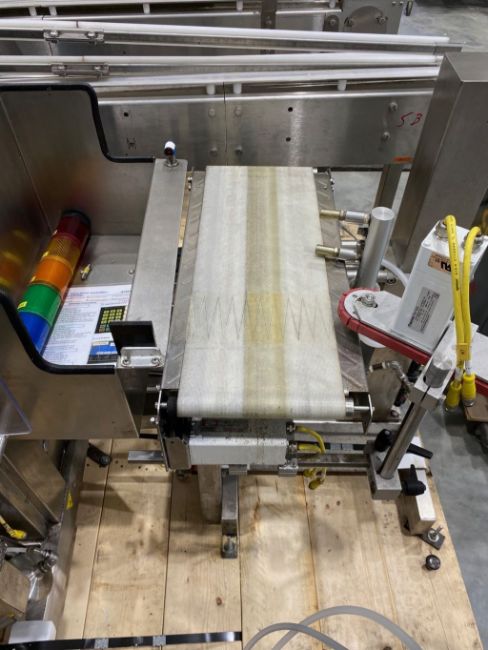 Thermo Electron Checkweigher, Thermo Electron AC9GP Thermo Ramsey Versaweigh checkweigher with Ramssey AC9000 Plus Display, includes Garvey Conveyors. Conveyors are 5 Inch Wide, Straight 60"Long, Straight (no end) 90 Inches Long, Straight (middle) 80 Inches Long, Straight (bottom) 80 Inches Long, Belt conveyor 24 Inches Width, Blower, 120 Volts. As shown in photos. (Located Central New York, NY)