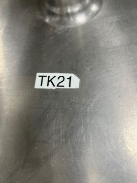 TK21 --- 1x Used- DCI Jacketed Tank, 900 Gallon, 316L Stainless Steel, Vertical. Approximate 72" diameter x 46" straight side, dished top and bottom. 304 Stainless steel dimple jacket rated 45/-15 psi at 100 degrees F. 304 Stainless steel sheathing with 2" fiberglass insulation. Stainless steel agitator bridge, top center entering bottom sweep agitator, missing drive motor. Top offset entering 3-blade turbine agitator, driven by a 1 hp, 3/60/208-230/460 volt, 1725 rpm gear motor, 13.65 to 1 ratio. 2" Center bottom outlet. (2) Spray balls, (1) removable baffle. Mounted on (3) stainless steel legs. Serial# 99PH59842C. (Loading Fee $300) (Located Denver, CO)