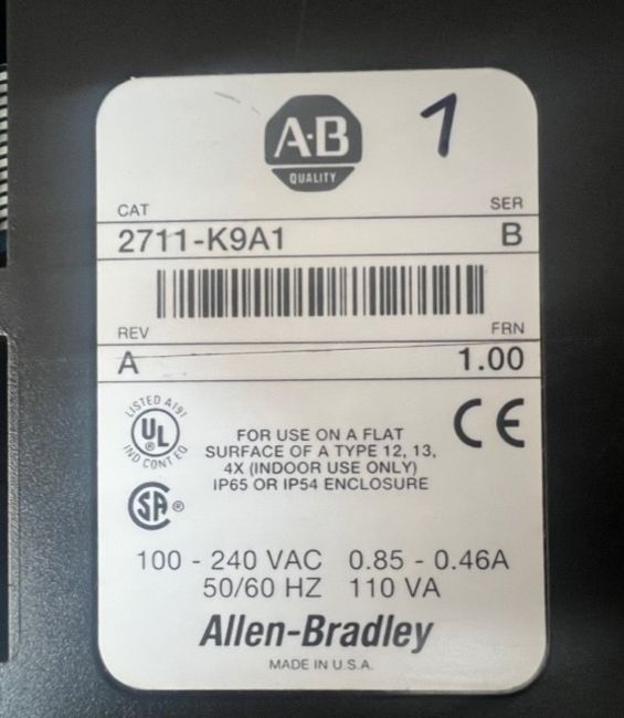Allen Bradley Panelview 900 Touchpad Display, Cat #2711-K9A1, Ser B (Load Fee $50) (Located Harrodsburg, KY)