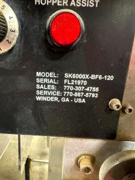 SureKap 6 Spindle Capper with Elevator.  Model:  SK6000X-BF6-120, Serial:  FL21970.  Machine is designed for Large Caps (120mm),  Handles caps from 38mm to 120mm.  115 Volts, 60 Hz, 2-3 cfm @ 60-80 psi.  As shown in photos.  (Located Central New York, NY)
