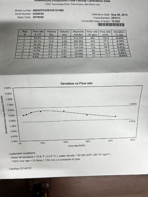 ROSEMONT VORTEX FLOWMETER, 8800D SERIES (SIMPLE LOADING FEE $110)