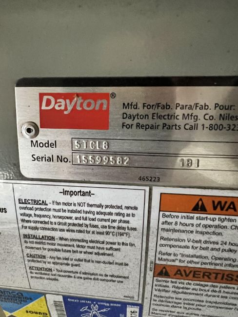NEW DAYTON CENTRIFUGAL ROUND IN-LINE DUCT BLOWER FAN, MODEL 5TCL8, A/N 15599582 181, 16 IN. WHEEL DIAMETER (SIMPLE LOADING FEE $110)