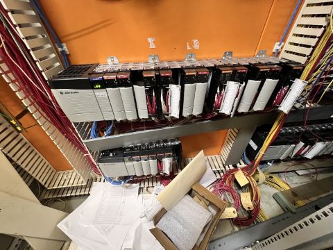ALLEN BRADLEY CONTROLLER RACKS, INCLUDES ALLEN BRADLEY LOGIX5573, LOGIX 5563 CONTROLLER AND ETHERNET IP CONTROLLER (SIMPLE LOADING FEE $220)