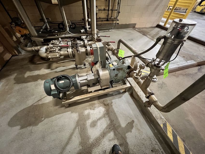 WAUKESHA CHERRY BURRELL SKIDDED POSITIVE DISPLACEMENT PUMP, MODEL 130 U2, S/N 353449 04, 3-HP MOTOR, 1750 RPM, 230/460, WITH CHERRY BURRELL AIR VALVE AND RECIRC LOOP (SIMPLE LOADING FEE $330)