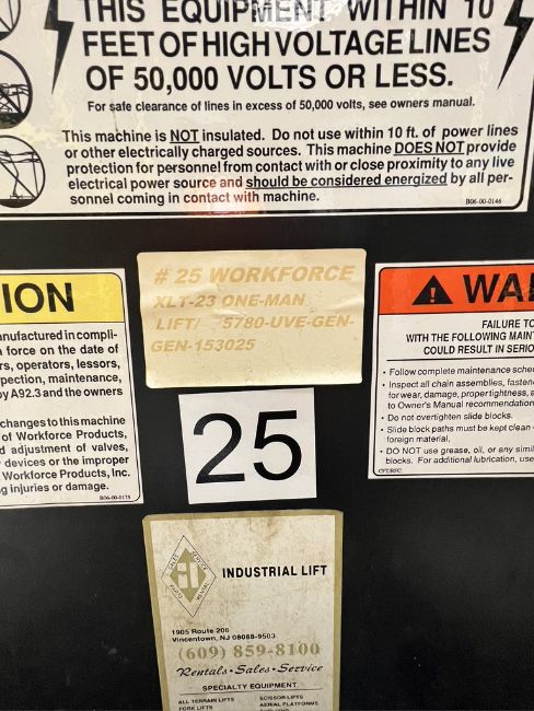 WORKFORCE XLT CAT 23 MAN LIFT, S/N 15240-22HRFIU, 300 LB CAP (SIMPLE LOADING FEE $110)