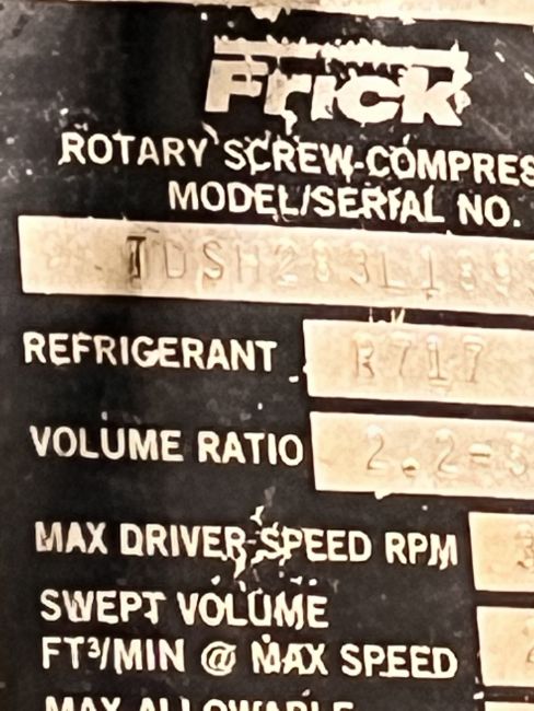 FRICK 1,000-HP HIGH STAGE AMMONIA SCREW COMPRESSOR, MODEL TDSH283L, S/N TDSH283L189, 3584 RPM, 4800 V (SIMPLE LOADING FEE $14,850)