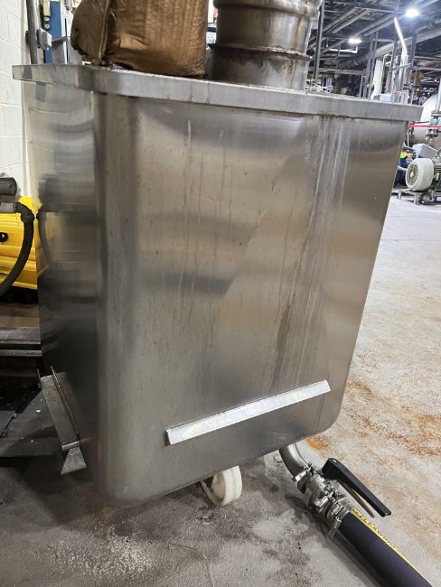 STAINLESS STEEL TOTE TANK ON WHEELS (SIMPLE LOADING FEE $110)
