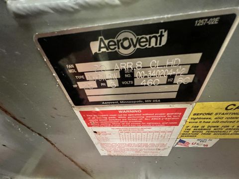 AEROVENT 25-HP HIGH PRESSURE RADIAL FAN, MODEL MH-OW-SW, S/N 00340204-1-2, 3 PHASE, 460 V (SIMPLE LOADING FEE $137.50)