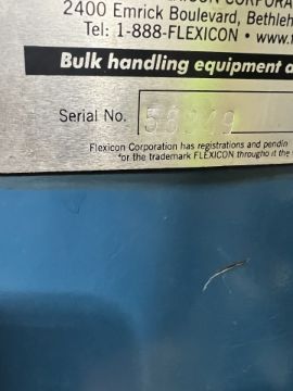 FLEXICON SUPERSAC UNLOADER / BULK BAG DUSCHARGER, INCLUDES I-BEAM WITH ELECTRIC HOIST, FLOW-CONTROL VALVE, SPOUT LOCK CLAMP RING, TELE-TUBE TELESCOPING TUBE, SAFETY FRAME AND MORE (SIMPLE LOADING FEE $1,650)