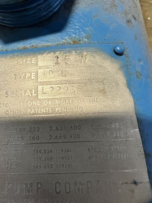 (3) PUMPS ON PALLET, (1) Labour Pump Model # 10-DHL, 2 x 2 x 8, 8" Impeller, 316 SS, 1750 RPM, 40 GPM, Head 61, (1) Labour Pump Type DPL, Size 15W, 2 1/2 x 2 1/2, (1) Milton Roy Metering Pump Model # FR161B144, 85 GPH @ 100 PSI, 79 GPH @ 400 PSI, 3/4 HP, 1725 RPM (SIMPLE LOADING FEE $110)