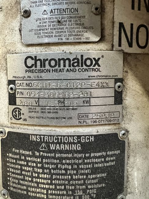(2) CHROMALOX CIRCULATION HEATERS, CAT NO. GCHI-6-012P-E4XX, 1-3 PHASE, 480 V (SIMPLE LOADING FEE $110)