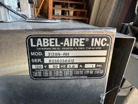 Label-Air Labeler, M/N 3138N-RH, S/N 0256350412, 120 Volts, 1 Phase, Mounted on Portable Frame (RIGGING, LOADING, & SITE MANAGEMENT FEE: $200.00 USD) (LOCATED IN LEMOORE, CA)