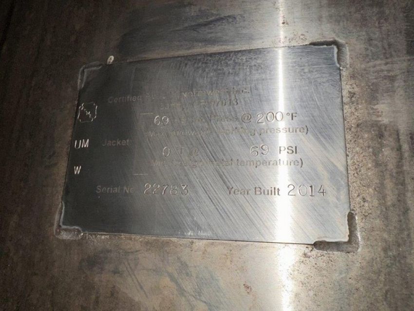 250 BBL (10178 Gallon) Vertical Cone Bottom 304 Stainless Steel Jacketed Vessel. Manufactured by JV Northwest (ICC) in 2013. Serial #22783. Jacket MAWP 69PSI @200F. 26'9"Tall x 9'10" Dia. Spray ball CIP, cone bottom, dished top. Weight 7700 lbs Previous Use: 250BBL Jacketed/Insulated Unitank for Beer Fermentation (RIGGING, LOADING, & SITE MANAGEMENT FEE: $4,000.00 USD) (LOCATED IN FREDERICK, MD)