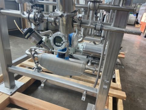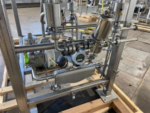 DOUBLE FRUIT SKID, OPERATED WITH OSGOOD ROTARY FILLER LOT 25, INCLUDES FRISTAM 15-HP PD PUMP, MODEL FKL15A1400980, GEA PROMASS 83 FLOW METER, MAGNETIC SEPARATOR, ADDITIONAL VALVES, INCLUDES PIG LAUNCHING STATION (YOG28)(INV.#84318)(Located @ the MDG Auction Showroom 2.0 in Monroeville, PA) (Handling, Loading & Site Management Fee: $350.00 USD)