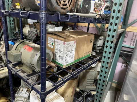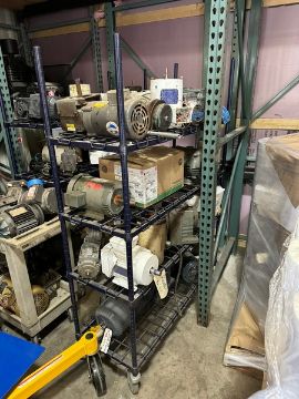 Large Assortment of Spare Motors & Drives, Assorted Manufacturers & Sizes, On Shelving & Push Cart (NOTE: Does Not Include Shelving & Push Cart) (RIGGING, LOADING, & SITE MANAGEMENT FEE: $100.00) (LOCATED IN CINCINNATI, OH)