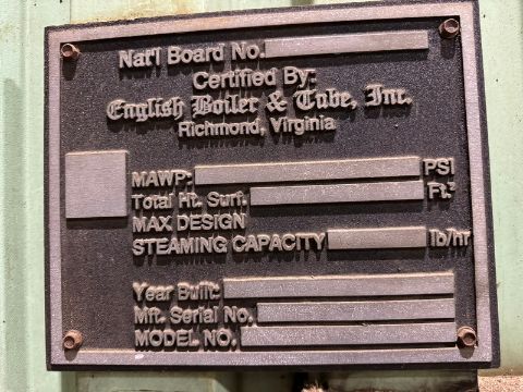 English Boiler & Tube Inc. Boiler System (LOCATED IN FREEHOLD, N.J.) (Simple Loading Fee $ TBD)