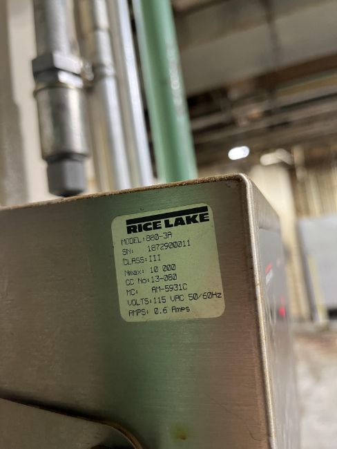 RICE LAKE WEIGHING SYSTEMS 880 PERFORMANCE PLUS MODEL:880-3A SN:1872900011 CLASS:III NMAX: 10 000 CC NO:13-080 MC: AM-5931C VOLTS 115 VAC 50/60 HZ AMPS: 0.6 AMPS (Simple Loading Fee $275)