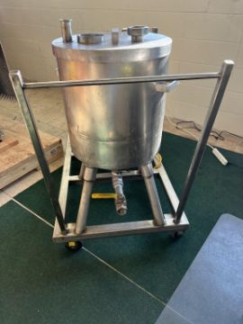 S/S Balance Tank & Goulds Pump Skid, with Aprox. 20 Gal. S/S Single Shell Tank, with 1-1/2 hp Pump, Includes Transfer Hose & NEW S/S Clamps Inside Tank, Mounted on S/S Portable Skid (INV#88835) (Located @ the MDG Auction Showroom 2.0 in Monroeville, PA)(Handling, Loading & Site Management Fee: $300.00 USD)