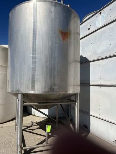 Sani-Fab Jacketed S/S Tank, Tank Dims.: Aprox. 7ft. Tall x 80” Dia., Cone Bottom, Mounted on S/S Frame (LOCATED IN MANTECA, CA)(RIGGING, LOADING, SITE MANAGEMENT FEE: $2,500.00 USD)