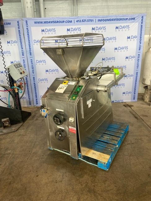 CIBERPAN S/S Molder, M/N SPX60, S/N 109, with Aprox. 21" W Belt, with S/S Infeed Funnel, with Dual Head Die Set, Aprox. 2" Dia., Mounted on S/S Frame (INV#95599)(Located @ the MDG Auction Showroom in Monroeville, PA)(Handling, Loading & Site MGMT Fee: $300.00 USD)