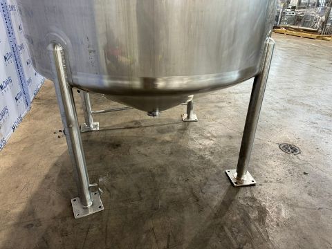 Feldmeier 1,000 Gal. S/S Single Wall Mix Tank, S/N E-823-00, Internal Vessel Dims.: Aprox. 62" L x 72" Dia., with Cone Bottom, with Aprox. 4" Clamp Type Discharge, with S/S Cone Bottom, Includes Top Mounted Agitation Motors with S/S Baffle Sweep Agitation, with Mounted on S/S Legs (INV#88413)(Located @ the MDG Auction Showroom 2.0 in Monroeville, PA)(Handling, Loading & Site Management Fee: $1,000.00 USD)