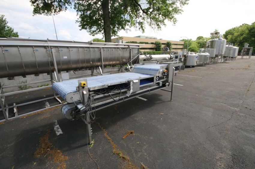 Straight Section of S/S Conveyor, Aprox. 13 ft. 7” L x 4 ft. W x 4 ft. H, with Aprox. 3 ft. 5” W Plastic Interlock Belt, Mounted on S/S Frame(INV#84250) (Located @ the MDG Auction Showroom 2.0 in Monroeville, PA) (Handling, Loading & Site Management Fee: $300.00 USD)