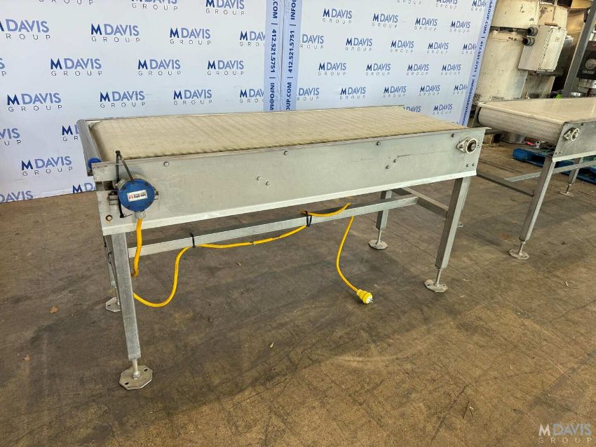 STRAIGHT SECTION OF S/S CONVEYOR, BELT DIMS.: APROX. 68” L X 23-1/4” W X 38” H, WITH DURA-DRIVE PLUS DRIVE, MOUNTED ON S/S FRAME, (RIGGING, HANDLING, LOADING & SITE MGMT FEE: $250.00 USD )
