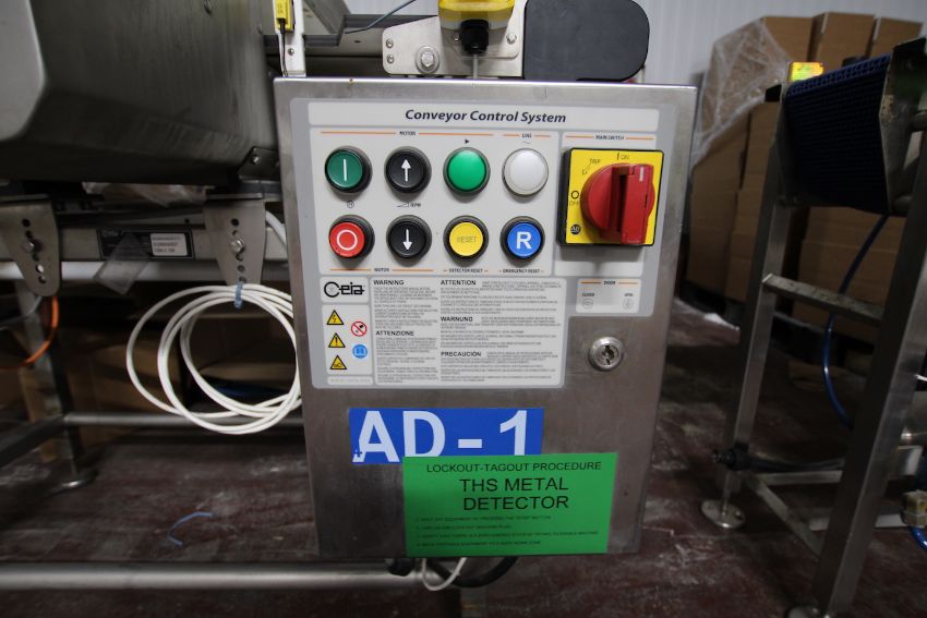 CEIA METAL DETECTOR WITH PRODUCT REJECT STATION, MODEL THS 21, S/N 21200242036, APERTURE APPROX. 15 IN. W X 3-1/2 IN. H (RIGGING, LOADING AND SITE MANAGEMENT FEE: $450.00)