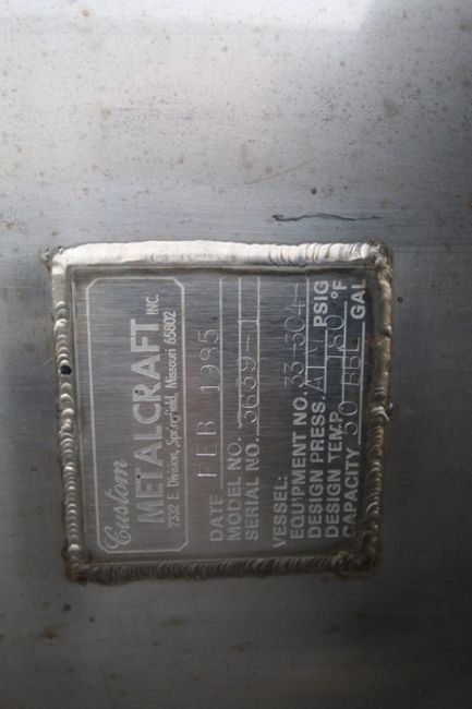 Custom Metalcraft Aprox. 1,700 Gallon Dome Top Dome Bottom S/S Tank, S/N 3639-1, Single Wall, with Bottom Side Hinged Man Door & top Bolted Access, 3' CT Bottom Connection, 3" Welded Top Connection, Includes Sprayball, Steel Legs, ( Aprox. Overall Dimensions - 186" H x 76" W) (INV#101747) (Located @ the MDG Auction Showroom in Pgh., PA) (Loading, Handling and Site Management Fee $300)