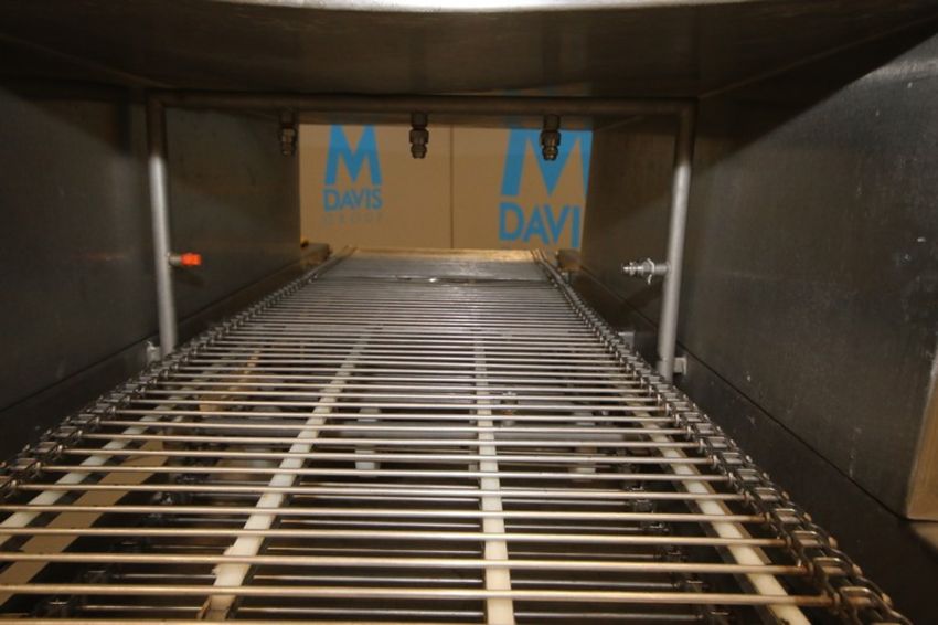 E-Quip Enclosed S/S Conveyor, M/N 238, Factory No.: 8636-S-6, with Baldor 3/4 hp Drive, with Internal Spray System, Aprox. 6 ft. L x 22" W x 33" H (Conveyor to Floor), Mounted on S/S Frame (INV#69271) (LOCATED IN MDG AUCTION SHOWROOM--PITTSBURGH, PA) (Loading, Handling & Site Management Fee: $75)