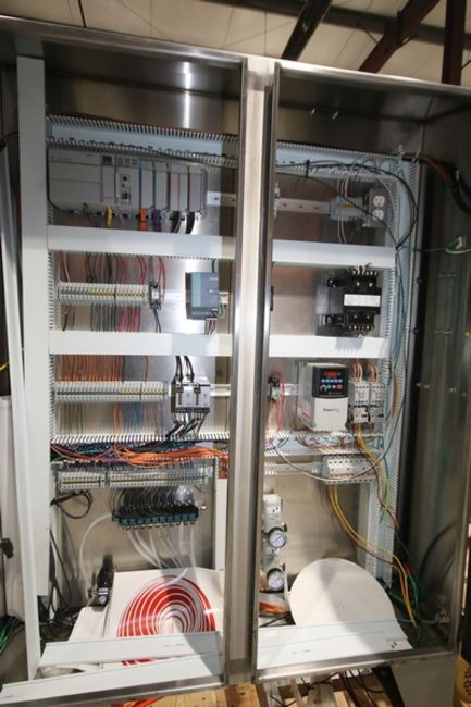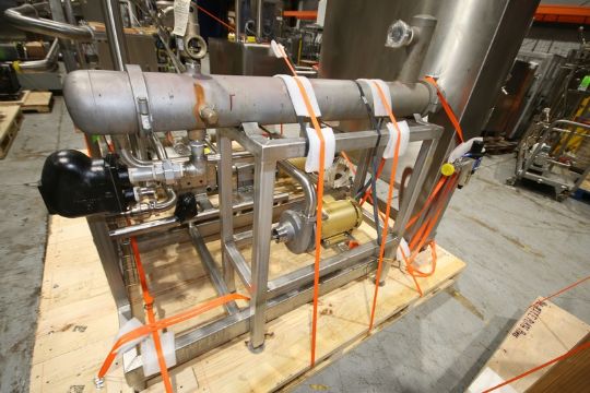 2016 AGC S/S HTST Press System with Model PRO2SH, SN 2016202, with (207) Plates, (1) Divider, Max Temperature 250° F, 200 psi Max Pressure, Includes 100" x 78" W Skid System with Auxiliary System with s/S Balance Tank, 2" Holding Tube, Ampco Model AZP3-045-DM Positive Display Pump, Ampco Centrifugal Pump, SPX & Waukesha Valves, 2" Floverter, S/S Control Panle with Allen Bradley Compact Logix L45 PLC Controller with AVG Touch Pad Display, Allen Bradley VFD, Honeywell Truline Digitial Chart Recorder, Also includes Koss 58" L x 6" W S/S Shell & Tube Heat Exchanger on Rack, (2) Skids (INV#101746) (Located @ the MDG Auction Showroom in Pgh., PA) (Skidding, Loading, Handling and Site Management Fee $2,000)